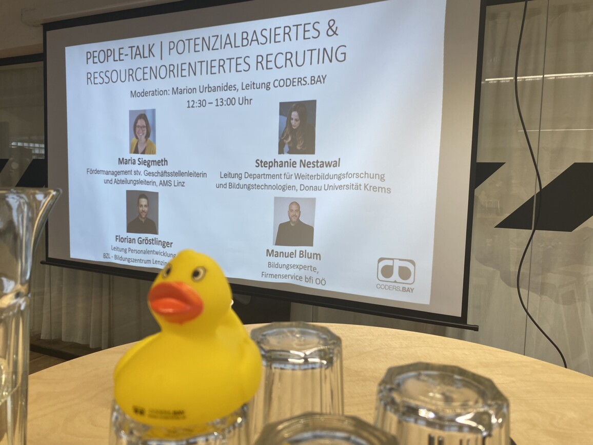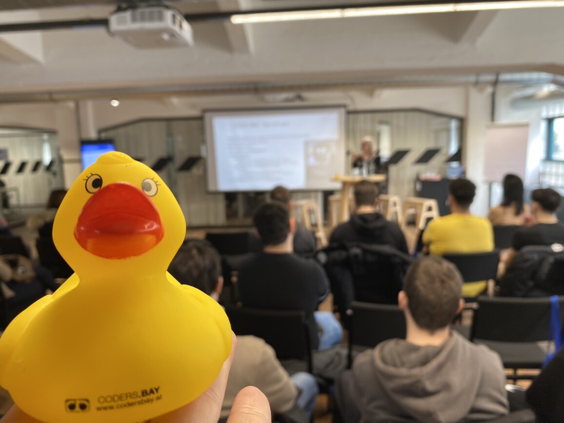 Eine gelbe Quietschente begleitete den Tag der offenen Tür – sie steht für die Methode des Rubberduck-Debuggings, durch den Fehler in Codes aufgespürt werden sollen. Wie Algorithmen „denken“ konnte man selbst im menschlichen Bubblesort-Experiment erfahren. Einige Teilnehmer:innen probierten sich als Code-Knacker:innen im Coding-Contest powered by cloudflight. Mit Expert:innen-Talks, spielerischen Formaten, Trainer-Gesprächen, Coding-Contests und offenen Türen am gesamten Stockwerk zeigt der Tag, wie vielfältig die Welt des Codens ist und wie der Einstieg gelingen kann. CODERS.BAY ist dabei ein wichtiger Faktor, um dem Mangel an IT-Fachkräften entgegenzuwirken. „Wir wollen auch Menschen ansprechen, die noch gar nicht wissen, dass sie ein Talent zum Coden haben. Oder die sich bisher noch nicht getraut haben, ihrem Traum nachzugehen. Hier können wir umfassend beraten, was zum Beispiel auch passende Fördermodelle angeht“, erklärt Marion Urbanides, Leiterin der CODERS.BAY, wo bisher rund 800 Absolvent:innen hervorgegangen sind.