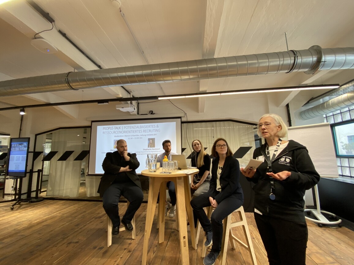 „Früher brauchte man Filter, jetzt müssen wir Trichter erweitern“, betont Wolfgang Kurz, Leiter der CODERS.BAY, in einem der Expert:innen-TALKS an diesem Tag. „Gemeint ist, dass man vormals aus hunderten Bewerbungen selektieren musste, heute muss man das Blickfeld erweitern, um neue Talente anzulocken. Die CODERS.BAY hat dabei zahlreiche Angebote entwickelt, die Menschen hilft, ihre Talente zu finden und auszubauen. Wichtig ist, eine Leidenschaft für das Thema zu haben.“