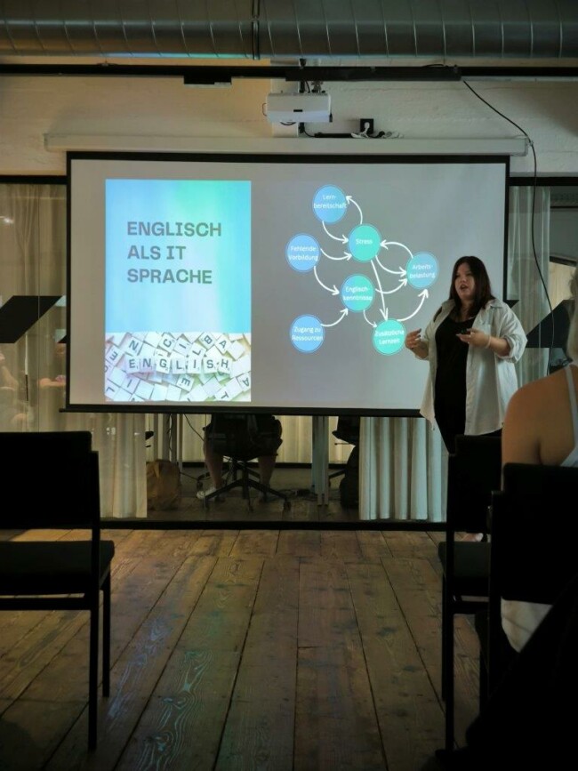 Mit mangelnden Englischkenntnissen kann sich das Stresslevel erhöhen, da nicht nur die neue Coding-Kompetenz sondern auch eine neue Sprache gelernt und trainiert werden muss. Das bedeutet auch mehr Anforderungen an das persönliche Zeit- und Ressourcen-Management. Lösungswege können Englisch-Intensivkurse vor Ausbildungsbeginn, E-Learning-Plattformen und Workshops zur Stressbewältigung sein.