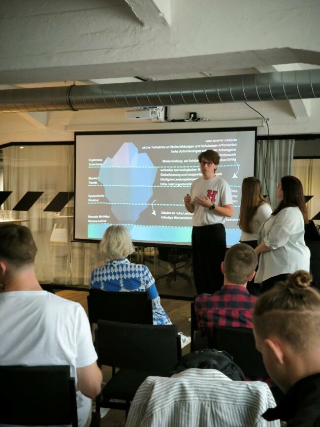 Oft fehlt den Auszubildenden noch ein klares Bild ihrer beruflichen Ziele, da ihnen noch Praxis und Erfahrung fehlt. Es ist schwierig sich in der schnelllebigen IT-Branche zu orientieren. Als Lösung schlagen die Studierenden eine enge Verschränkung und dauerhafte Kooperationen mit Unternehmen vor, um die Auszubildenden auf die „reale“ Welt vorzubereiten.
