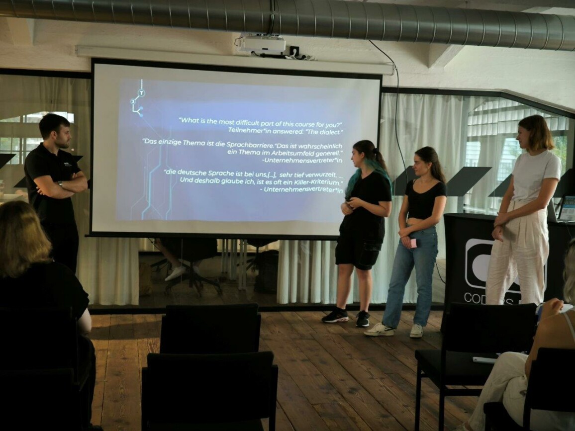 - Einstufungstests für Sprachkurse: Ein wichtiger Verbesserungsvorschlag ist die Einführung von Einstufungstests für Sprachkurse und gleichzeitig neue eine zeitliche Einplanung für Sprachkurse. Diese Einstufungstests sollen vor Beginn der Ausbildung durchgeführt werden, um das Sprachniveau der Teilnehmer genauer bestimmen zu können, damit klar ist, ob es überhaupt sinnvoll ist, dass eine Programmier-Ausbildung angefangen werden sollte. Zusätzlich soll per Umfrage eruiert werden, ob Auszubildene den Sprachkurs vor Beginn der CODERS.BAY-Ausbildung machen wollen oder währenddessen.